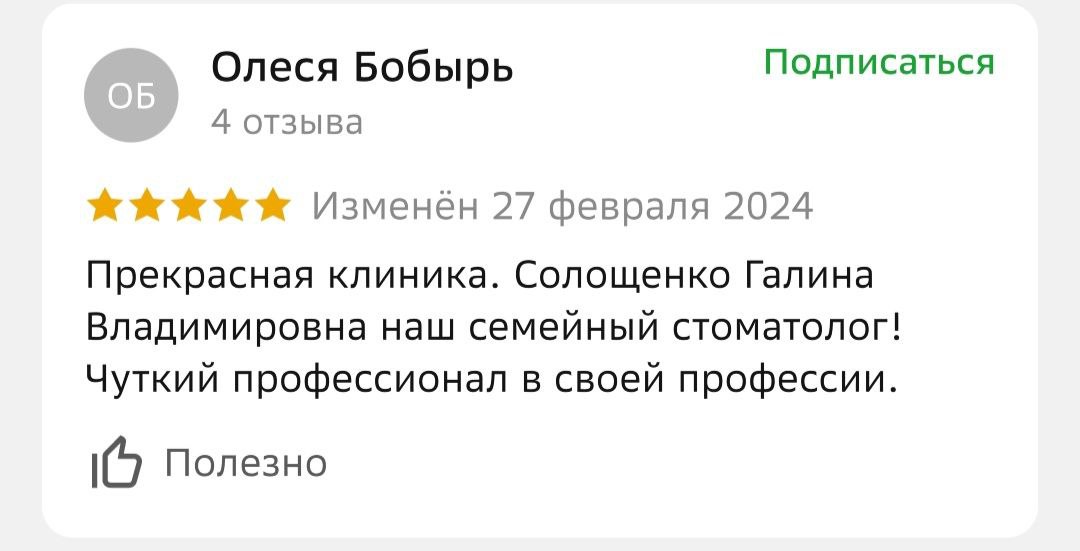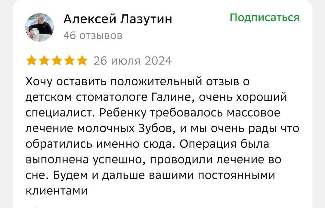 Что говорят наши пациенты о враче: «Просто чудо-женщина, супер-герой для моих детей, благодаря ей мы наконец-то смогли лечить зубы без слез, криков и истерик, теперь ребёнок ходит на лечение с удовольствием и без страха».