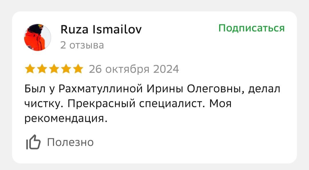Что говорят наши пациенты о враче: «Пришла к доктору по рекомендации подруги и ни капли не пожалела. Прекрасный врач-стоматолог, очень аккуратно все делает, понятно и доходчиво всё объясняет».